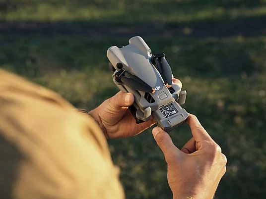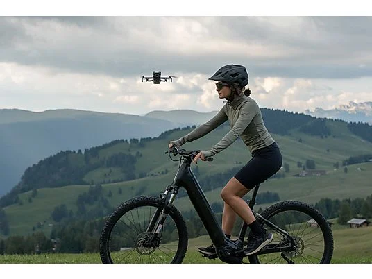 Esthétique DJI signature : finitions soignées, pliage pour la portabilité.