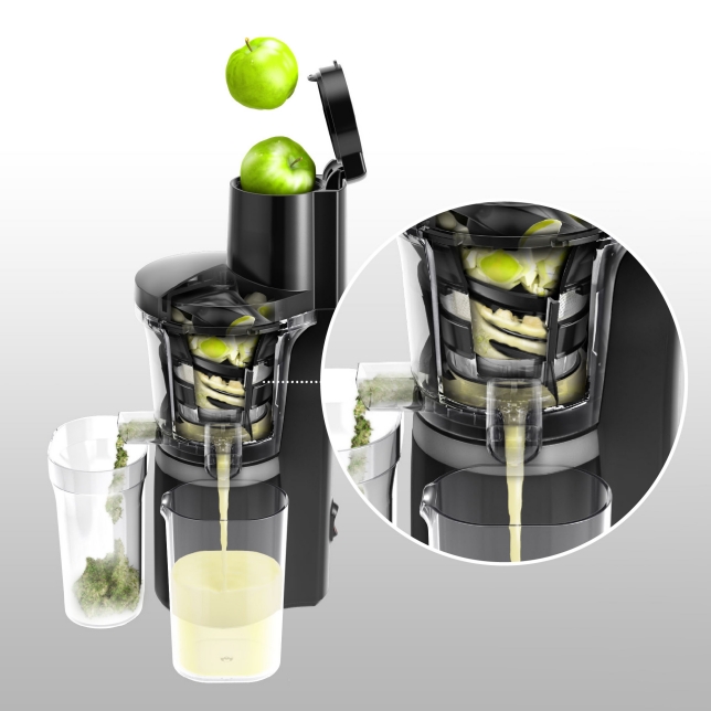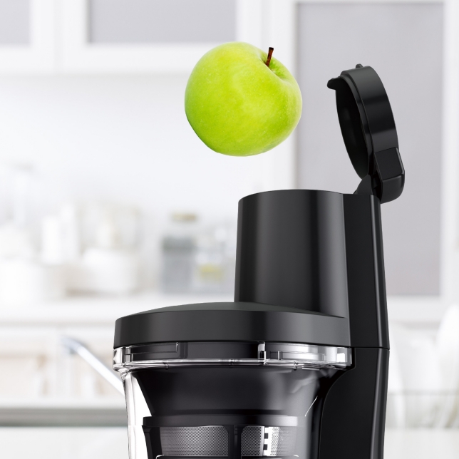 | Ouverture d’entrée | 75 mm — permet de passer des fruits de taille moyenne sans les couper, ce qui est très pratique. |