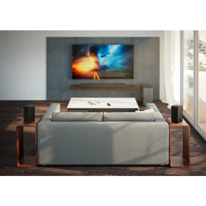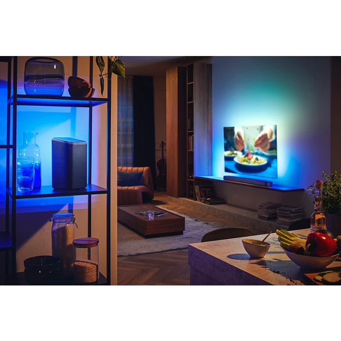 Adaptable : fonctionne seul, en stéréo, ou en combinaison avec barre de son ou caisson Fidelio pour un son plus large.
