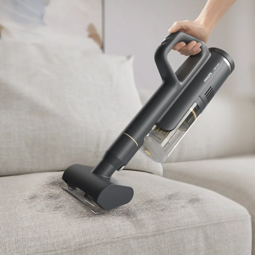 Le Philips Série 7000 AquaTrio sans fil (XW7263/11) est un appareil 3-en-1 innovant qui aspire, lave et se transforme en aspirette pour un nettoyage complet. Grâce à la technologie AquaSpin, ses brosses à microfibre tournent à 2 500 tours/minute, éliminant efficacement poussières, liquides et taches. Il offre trois modes : aspiration + lavage pour un gain de temps, aspiration seule pour les poussières sèches, et mode aspirette pour les zones difficiles d’accès. Ses réservoirs séparés (450 ml eau propre / 420 ml eau sale) garantissent une hygiène parfaite, tandis que la station de nettoyage automatique rince et sèche les brosses après chaque utilisation. Avec une autonomie jusqu’à 45 minutes (aspiration seule) ou 25 minutes (mode combiné), il couvre facilement de grandes surfaces sans recharge. Compact (≈4,5 kg), ergonomique et sans fil, il s’intègre parfaitement dans une routine de ménage rapide, efficace et hygiénique.